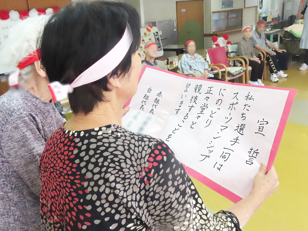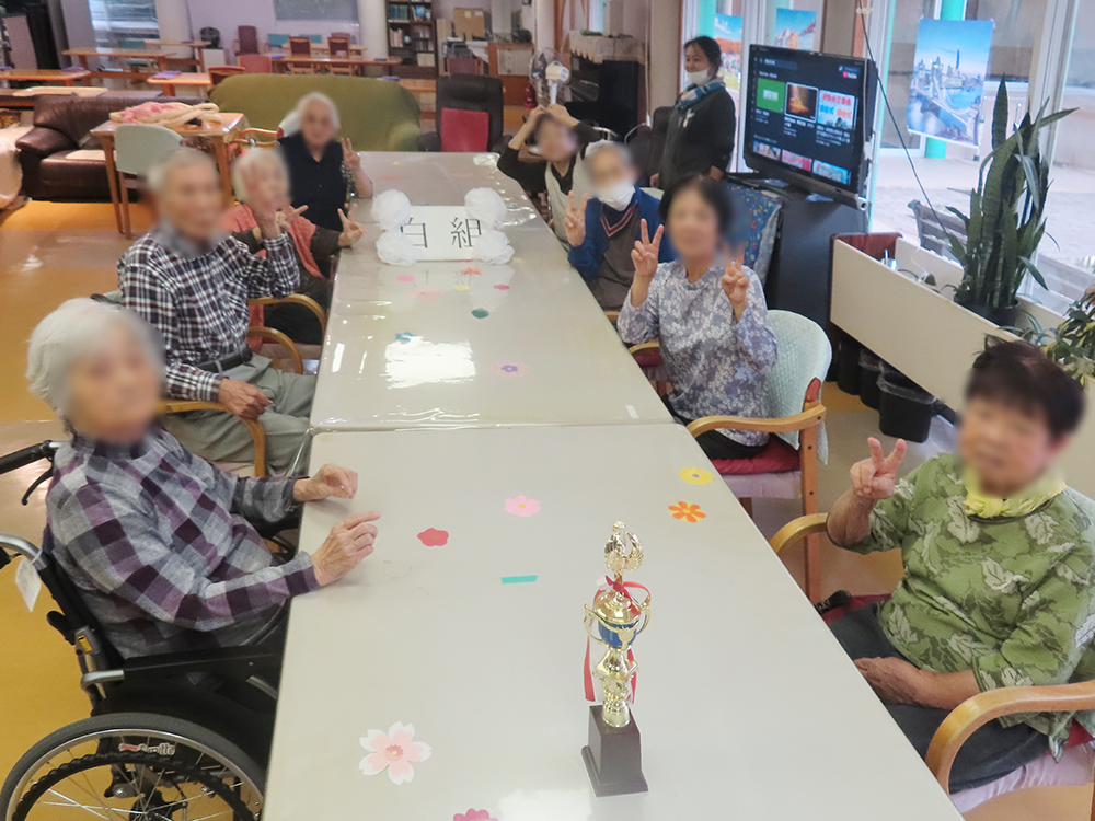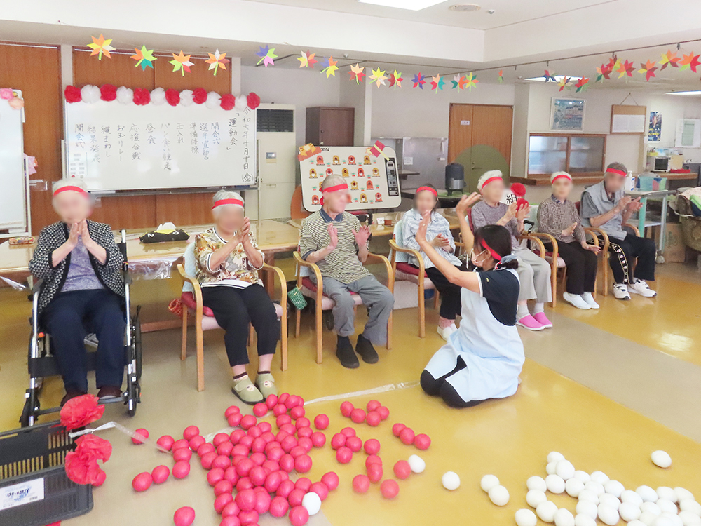 「白組、負けないわよー!」「さあ、みんなで力を合わせて!」と、笑顔と元気あふれる掛け声が飛び交いました。