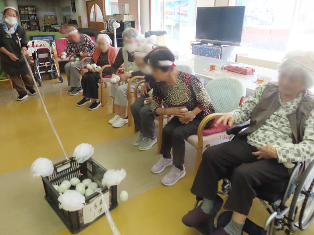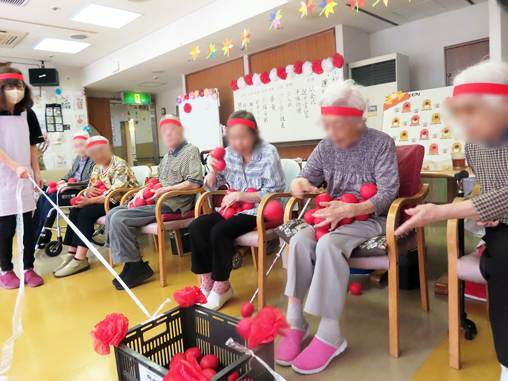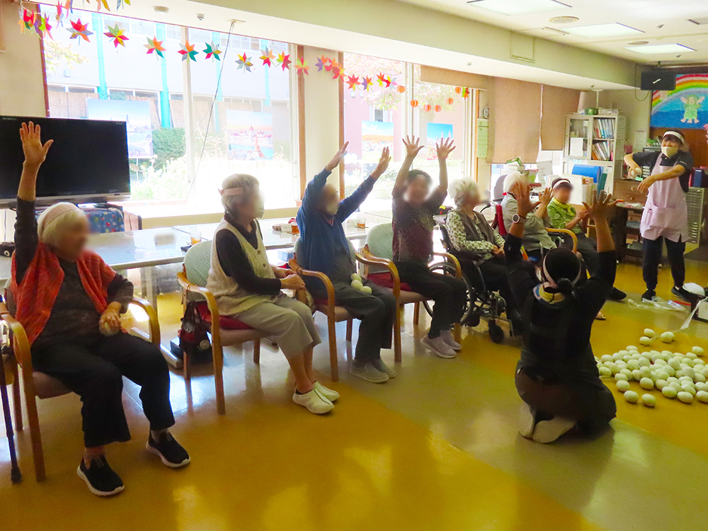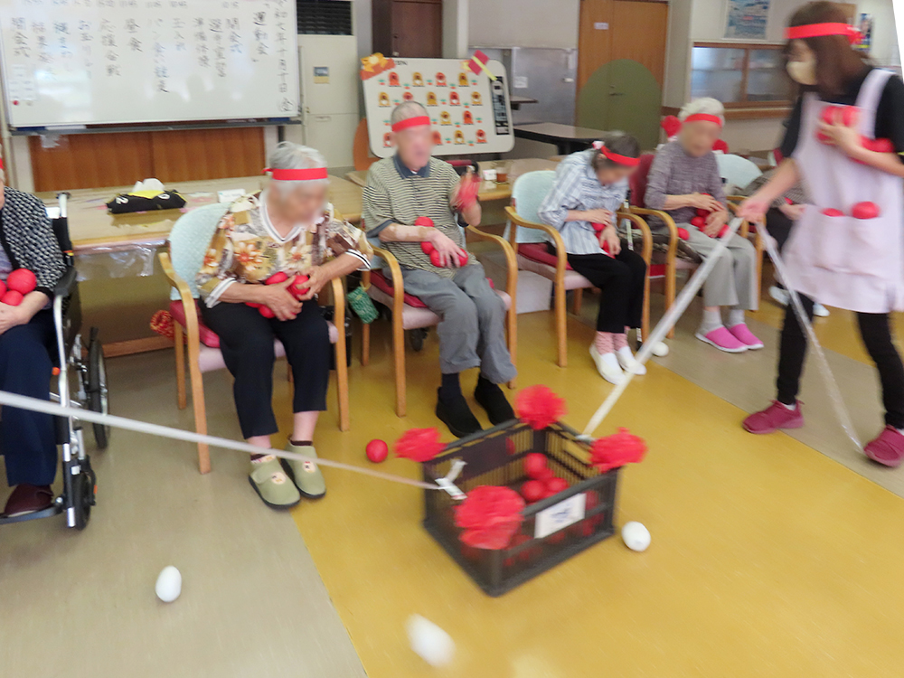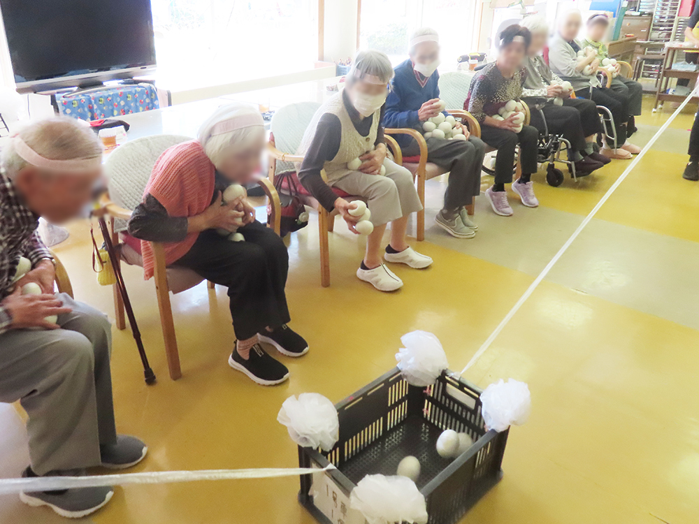 「こっちに持ってきてー!」「わあ、入った!やったー!」と喜ぶ利用者様の笑顔が輝きます。