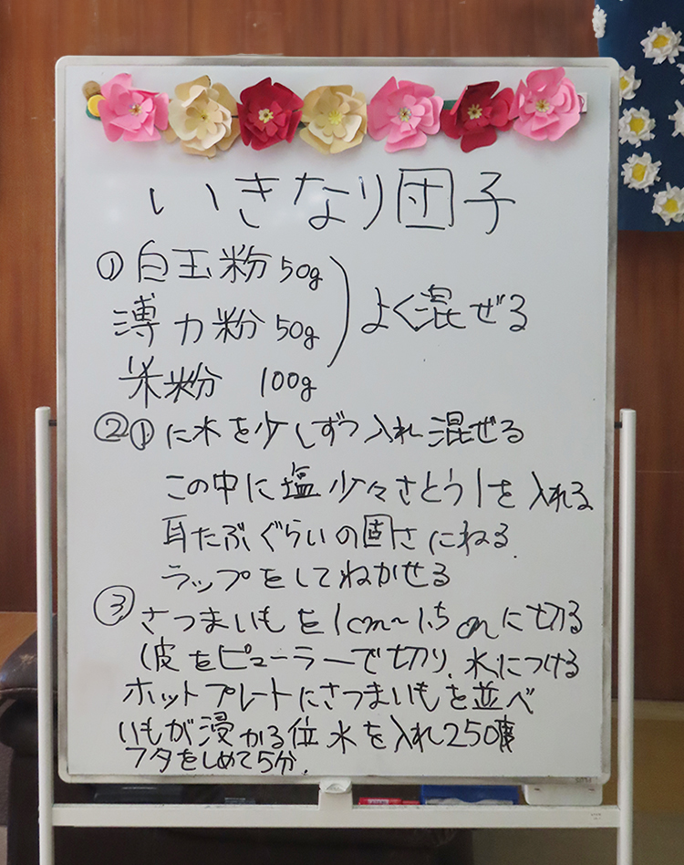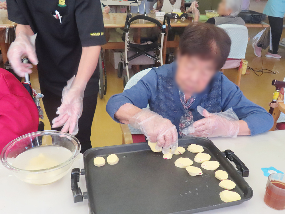 ホットプレートから立ち上る湯気と甘い香りに包まれ、自然と会話も弾む、和やかなおやつ作りのひとコマとなりました。