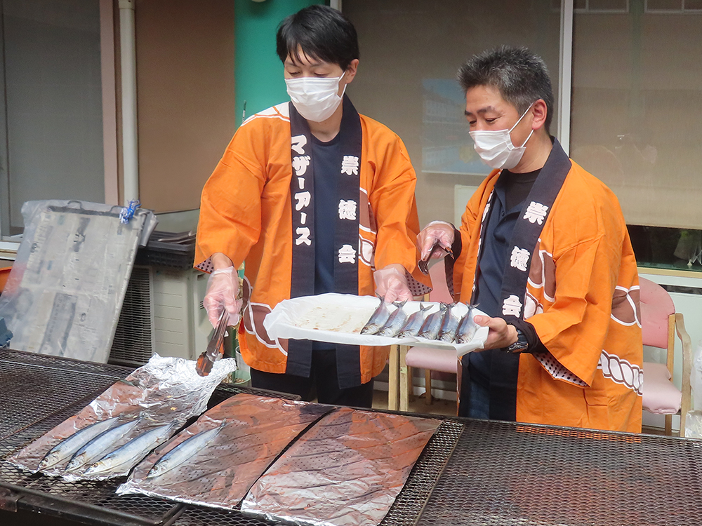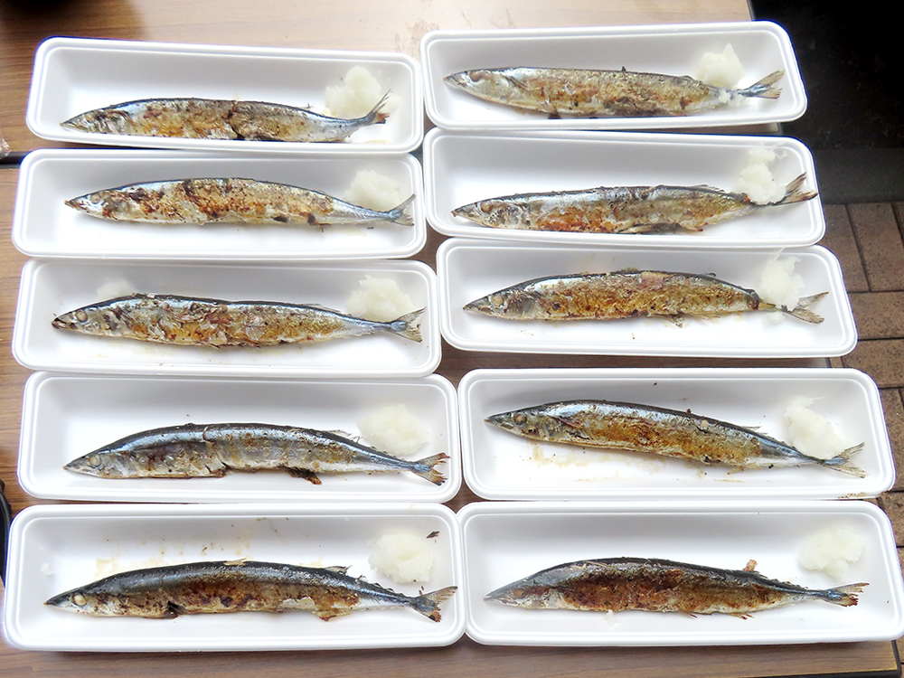 職員が朝早くから準備を進め、香ばしく焼き上げた秋刀魚をはじめ、秋の味覚をたっぷりご用意いたしました。