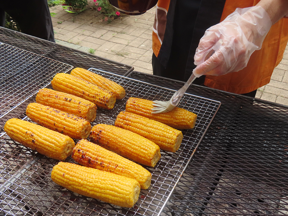中庭の鉄板で焼いているので、とても香ばしい匂いに包まれ、会場が期待に沸いていました♪
