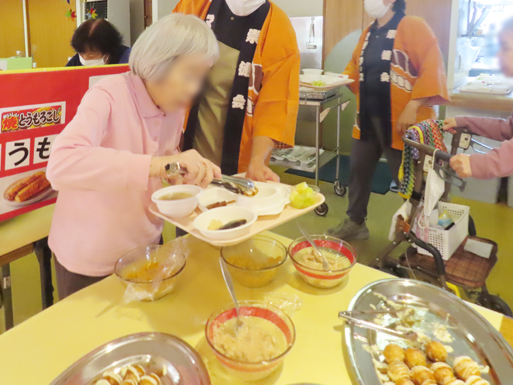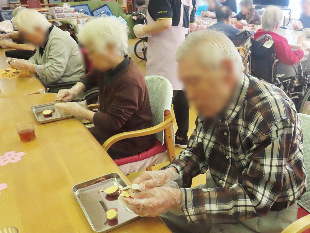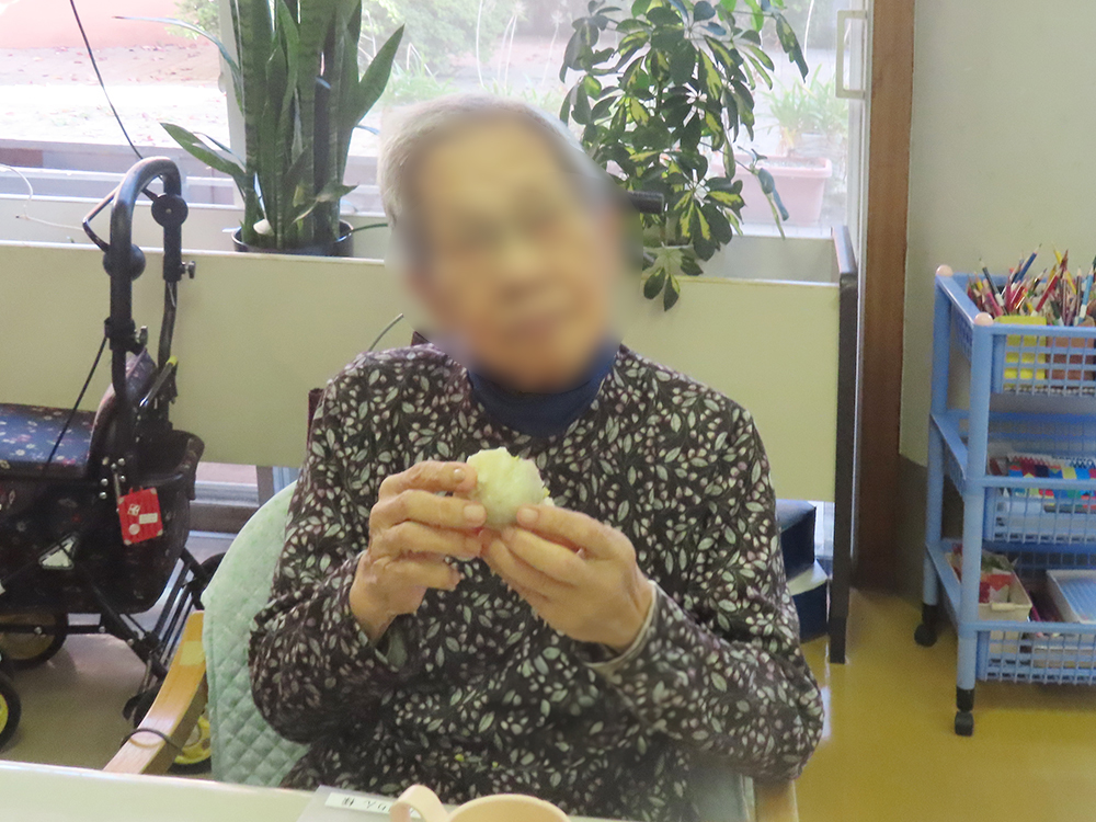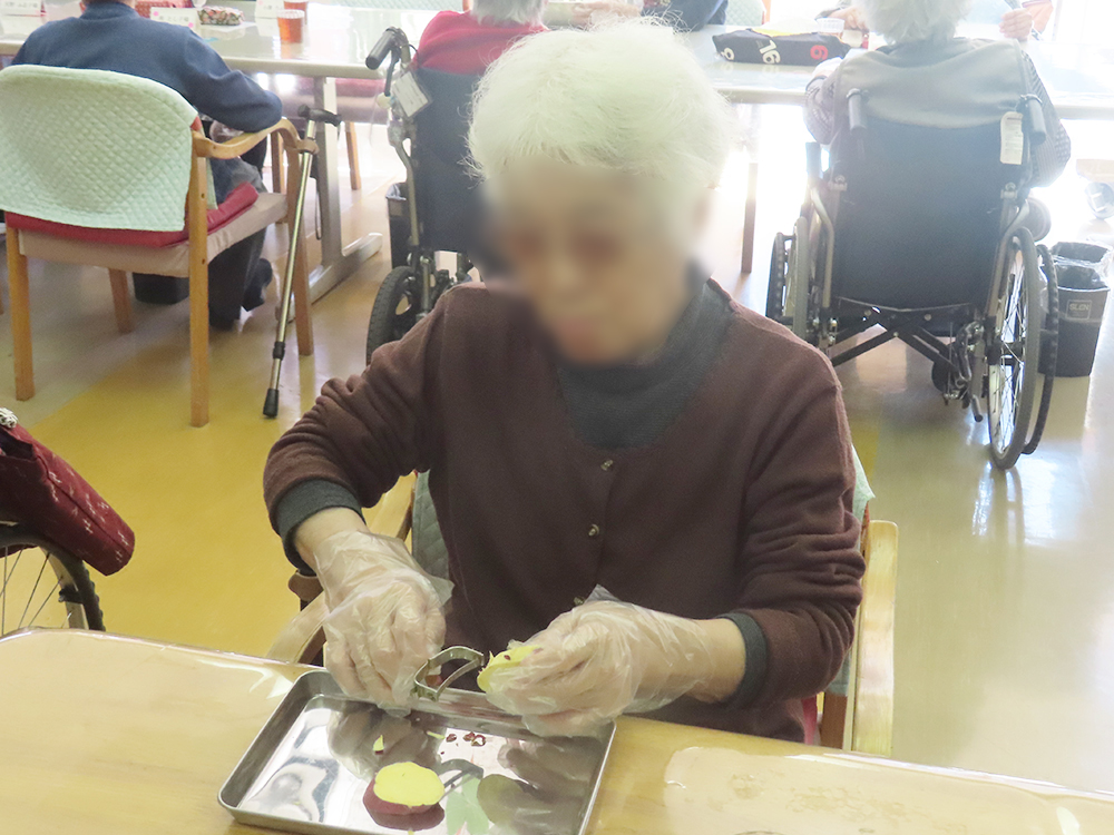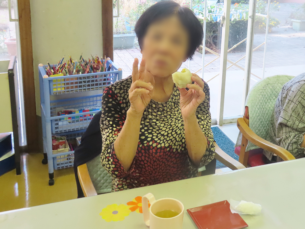利用者様も笑顔で頬張りながら、秋のひとときを楽しんでいらっしゃいました。