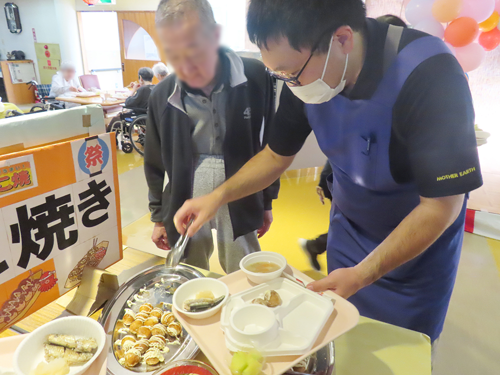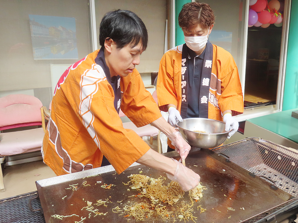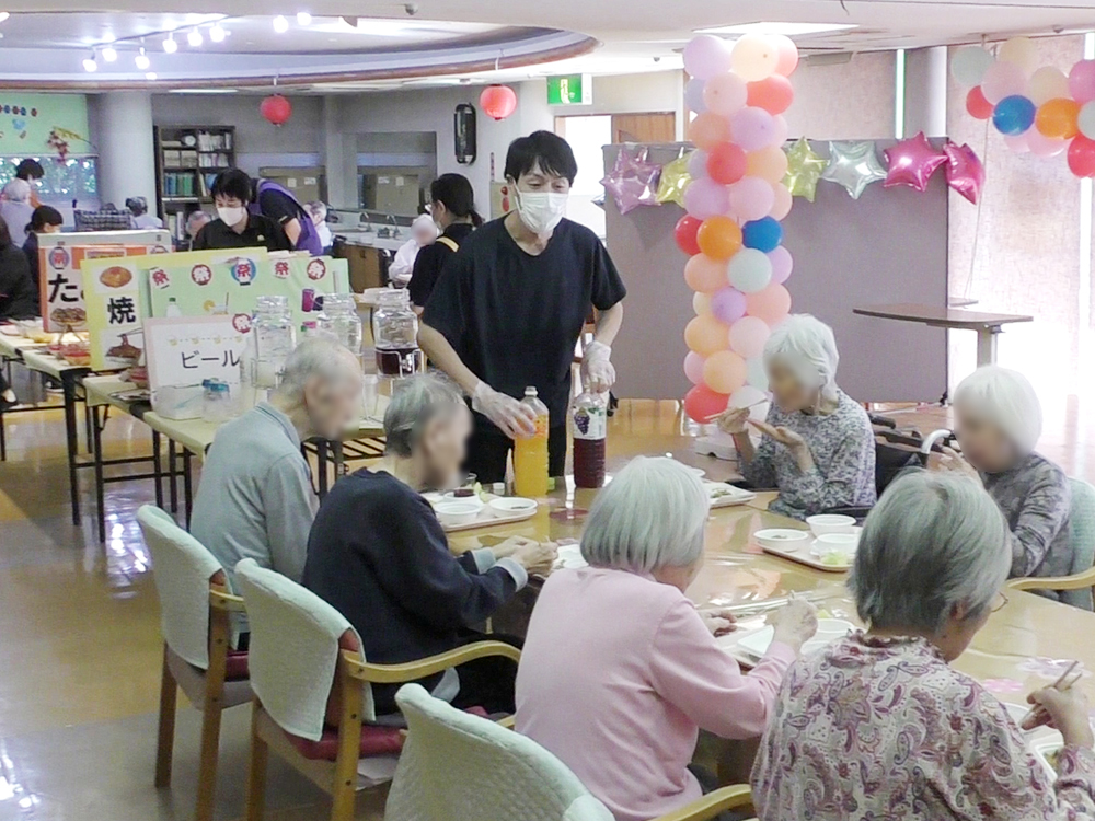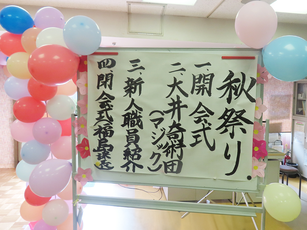 この後に、利用者様には中庭に集まってもらい秋祭りイベントを開催します。