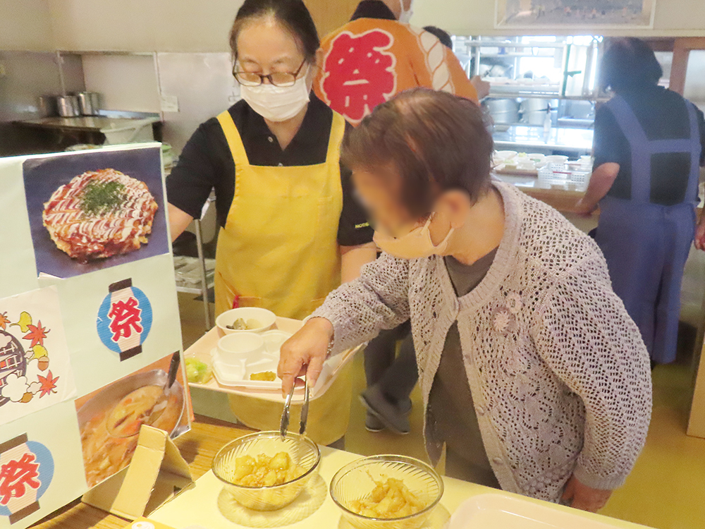 昼食には、秋祭りにちなんだ特別バイキングメニューを用意しました。