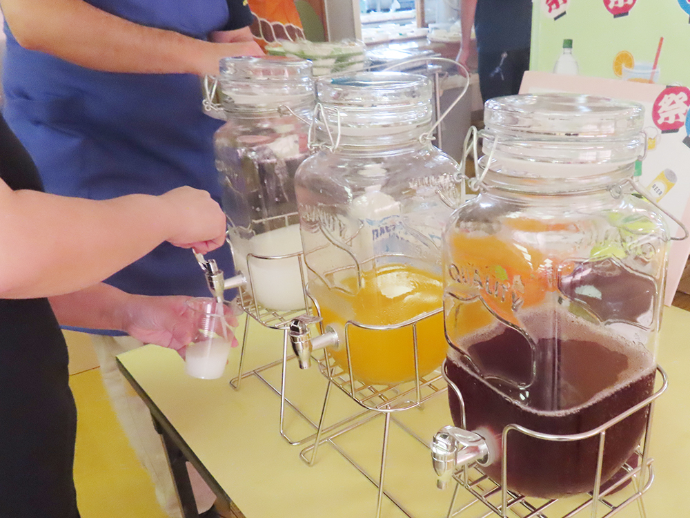 飲み物はオレンジジュース、カルピス、ぶどうジュース、サイダー、そしてノンアルコールビール🍺からお好きなものを選んでいただきました。