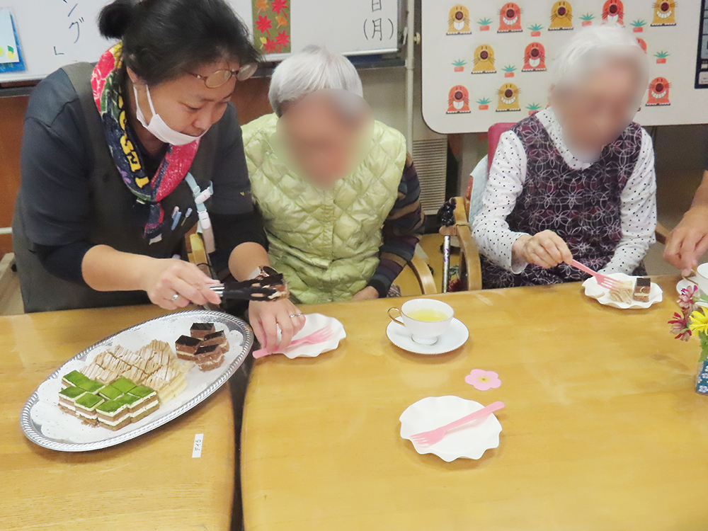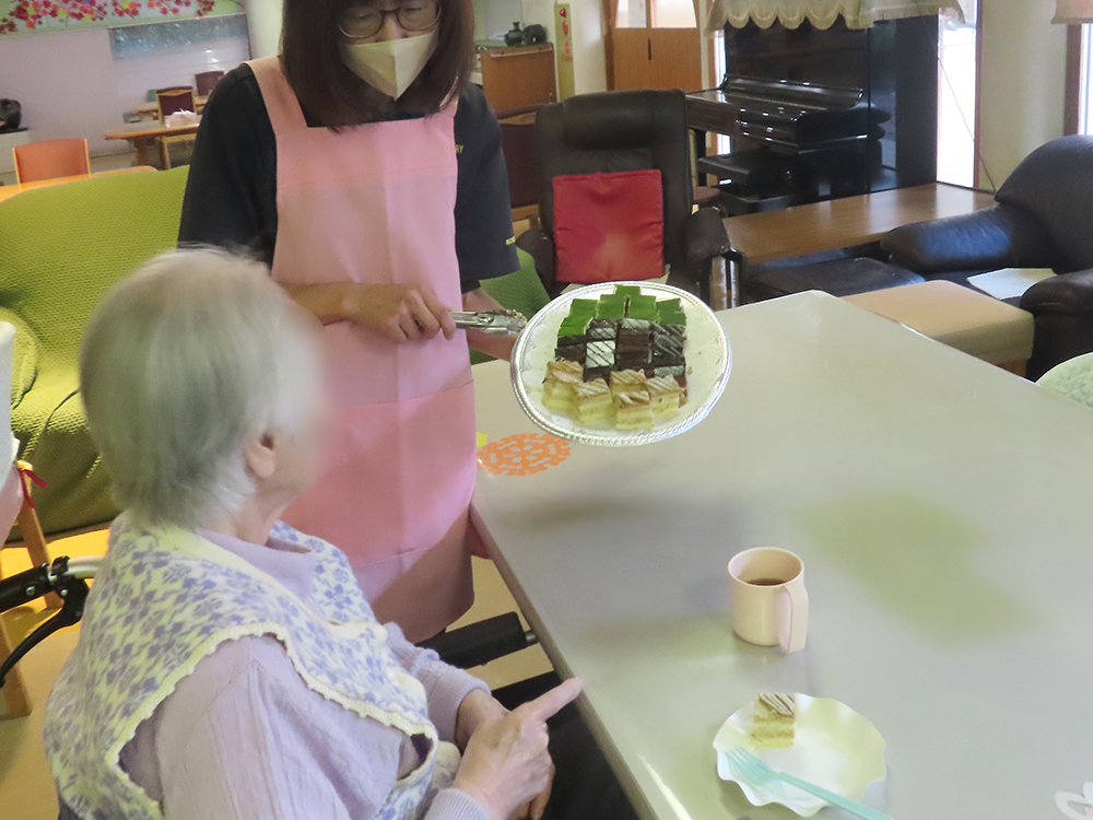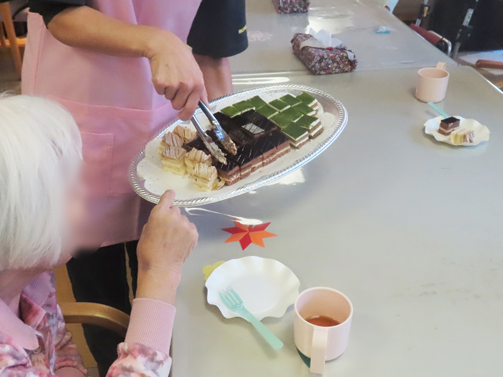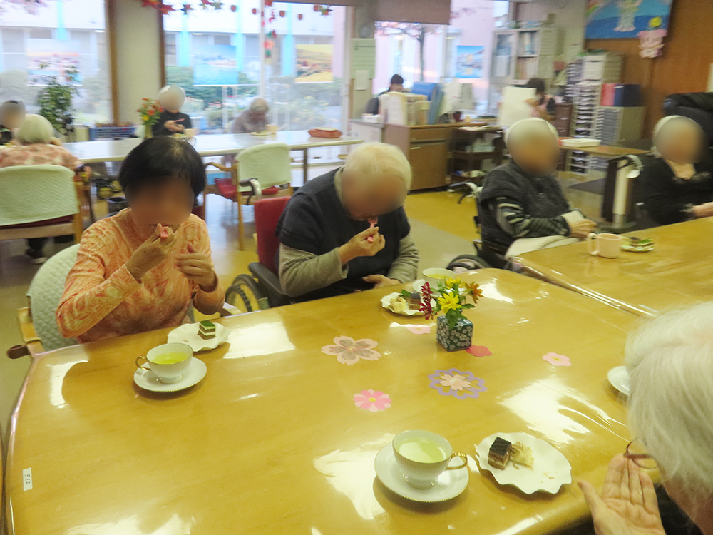 嬉しそうな声がたくさん聞こえてきました☕おやつの時間を、いつもとは少し違う雰囲気で楽しんでいただきました。