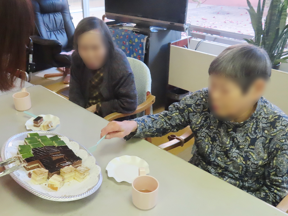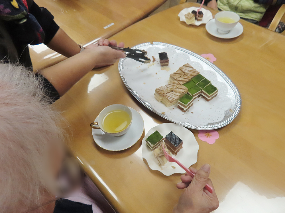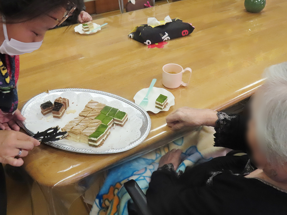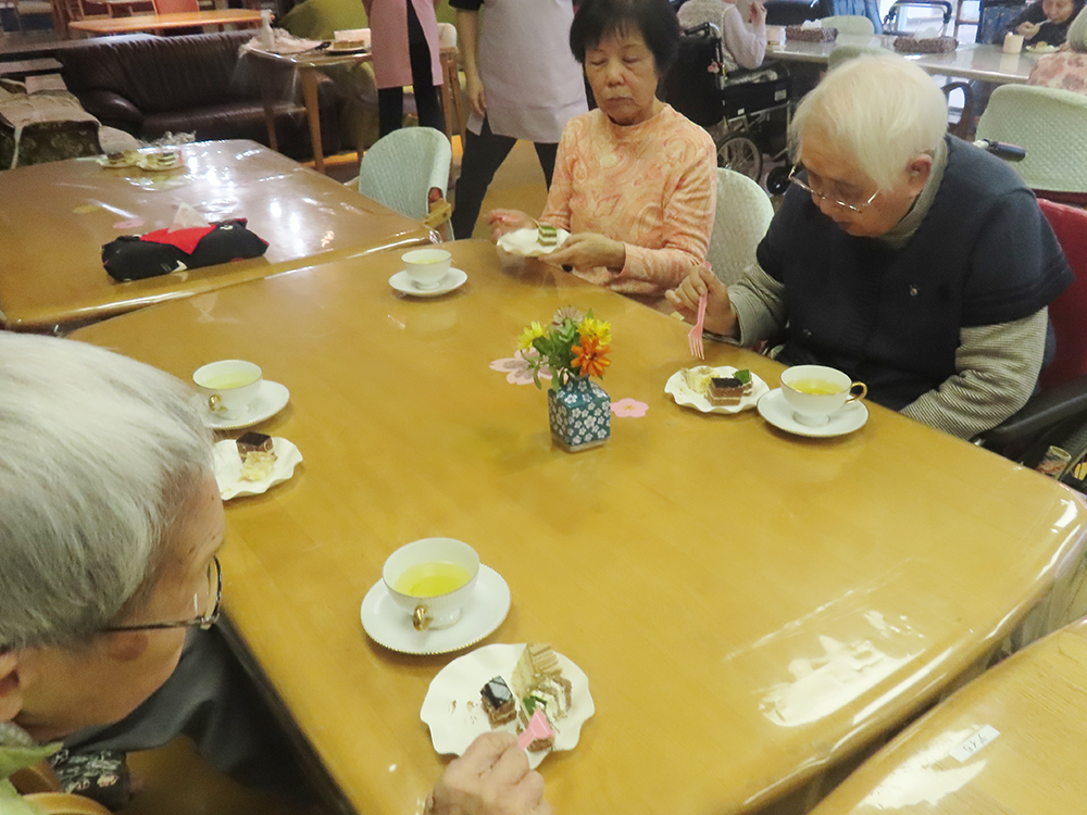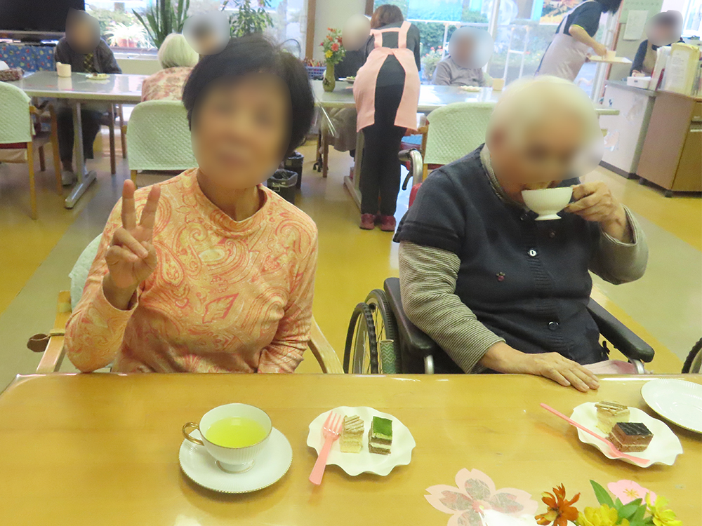 嬉しそうな声がたくさん聞こえてきました☕おやつの時間を、いつもとは少し違う雰囲気で楽しんでいただきました。