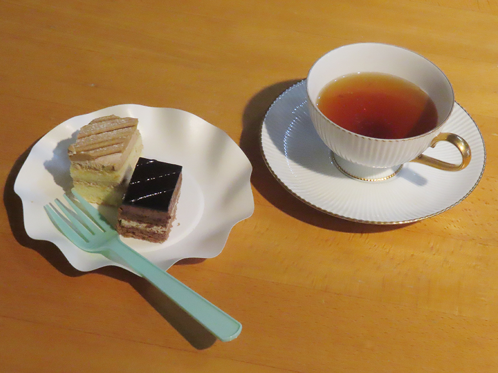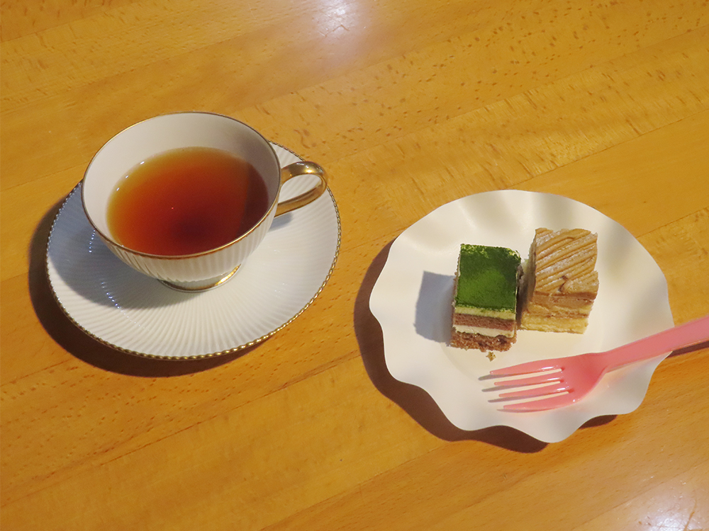 食べ始めると「甘さがちょうどいいね」「この抹茶、香りがいいわ」「久しぶりにケーキ食べた!」と