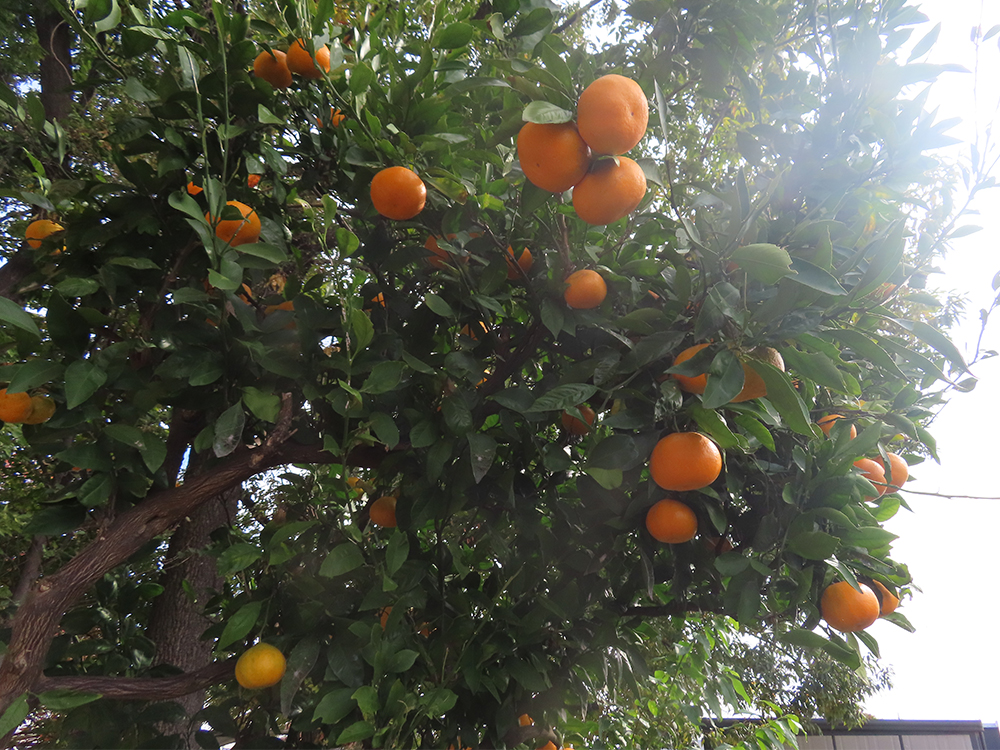 木の枝いっぱいに実ったみかんを見上げながら、