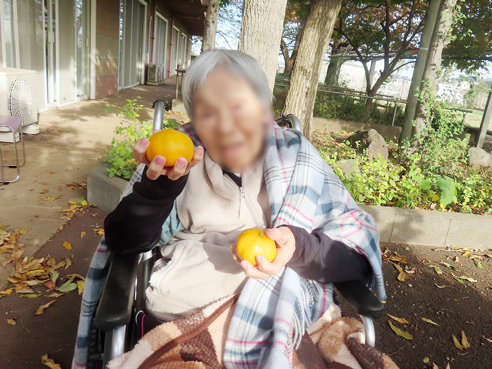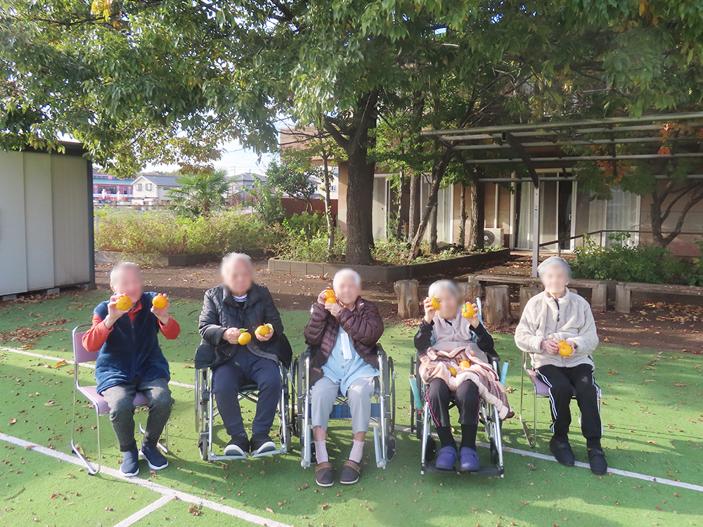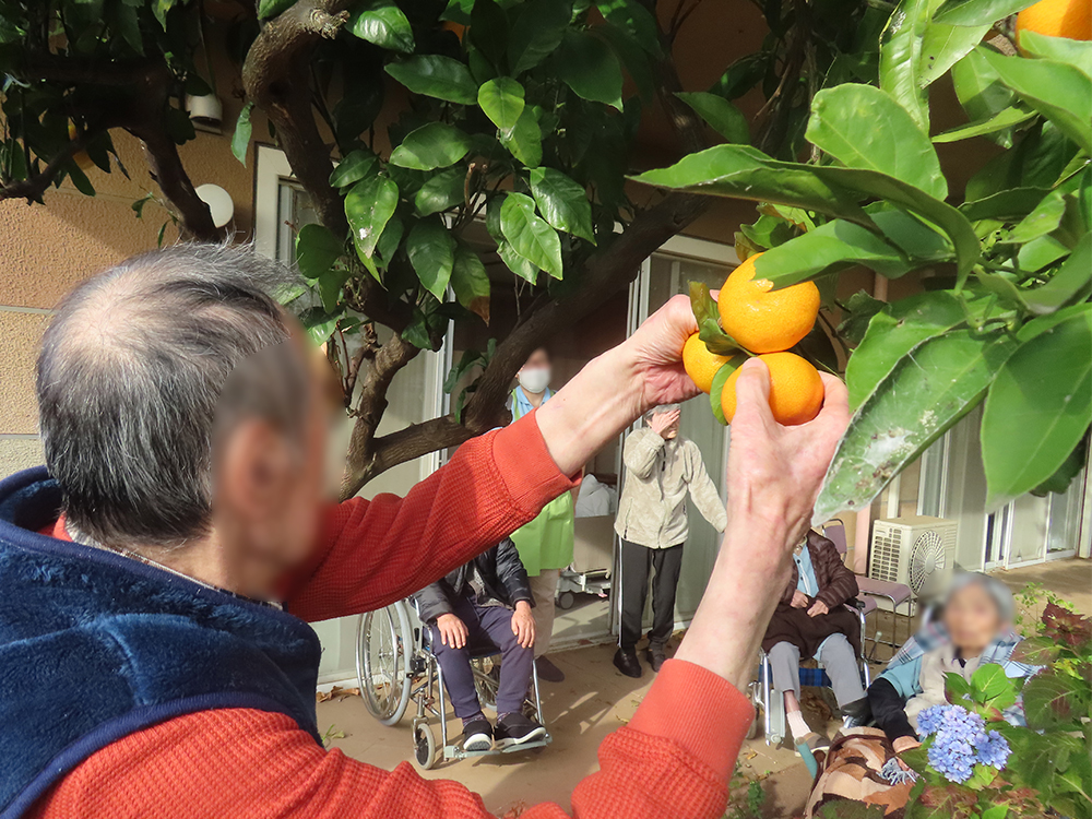青空のもと、利用者様にお集まりいただき、みかん狩りを楽しみました。