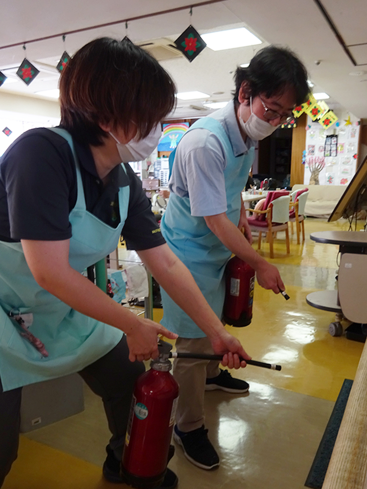 今後も定期的に消火設備や避難経路の確認を行い、利用者様の安全を守るための避難手順や対応方法について、職員全員で継続して学び、備えていきたいと思います。