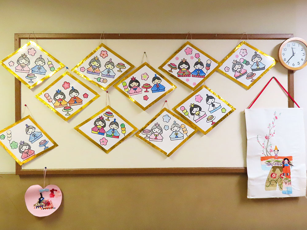 また、各フロアには職員手作りの雛人形を飾っています。