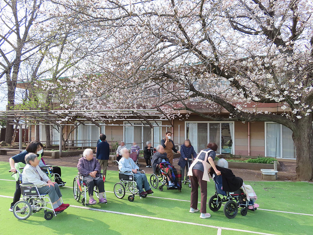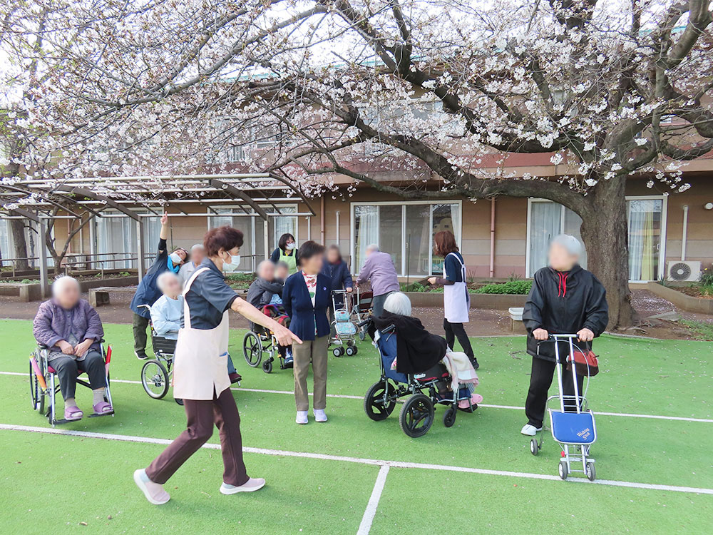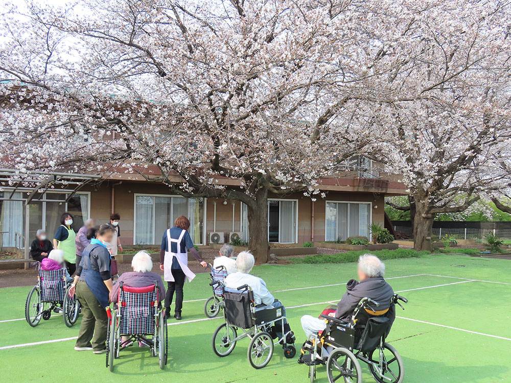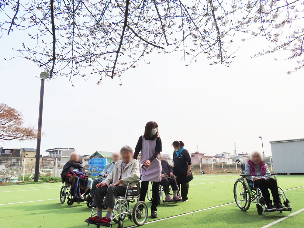 やわらかな陽ざしのもと、春の訪れを感じながら、利用者様と一緒にお花見を楽しみました。