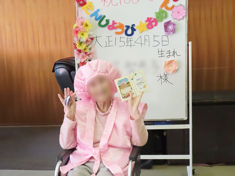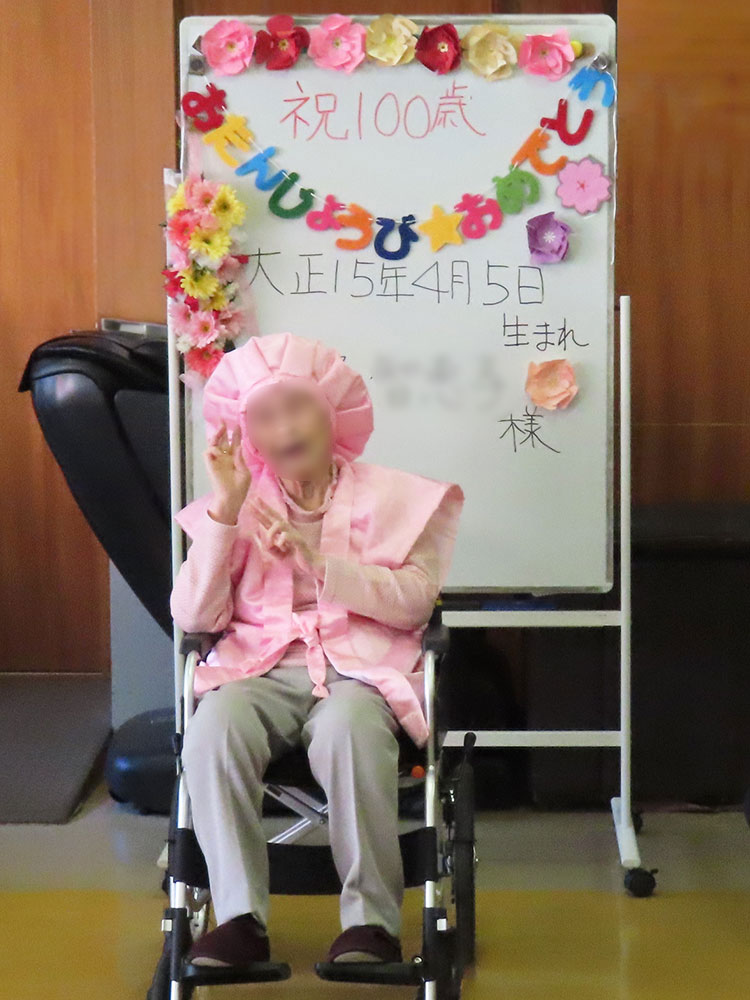 マザーアースデイサービスご利用者様が、4月5日に100歳のお誕生日を迎えられました。