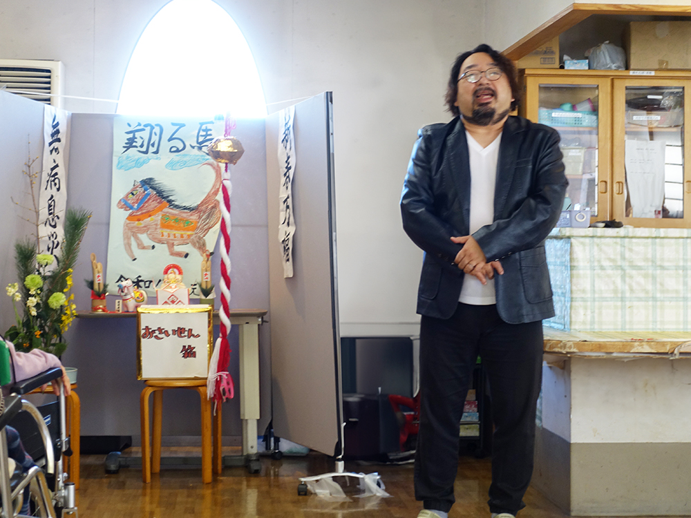 元日は、稲荷山施設長からの新年の挨拶から始まりました。