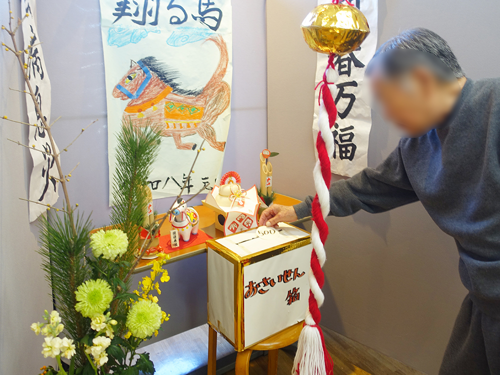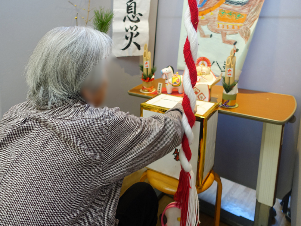 施設内に手作りの「マザー神社」を設け、利用者様に初詣を楽しんでいただきました。