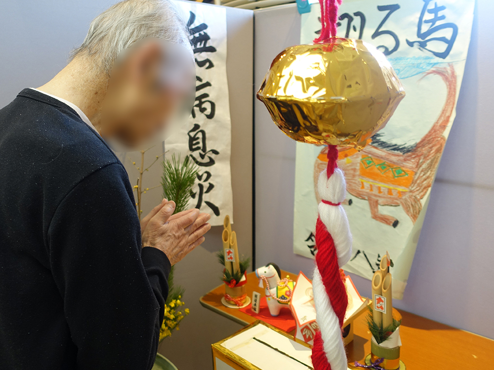 施設にいながらも、お正月らしい厳かな雰囲気を感じていただくことができ、穏やかな新年の始まりとなりました⛩。