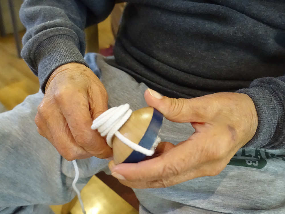 コマを手に取ると、「子どものころによくやったわ」「久しぶりだけど覚えているものね」と、昔の思い出話に花が咲きました。