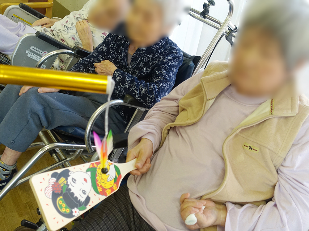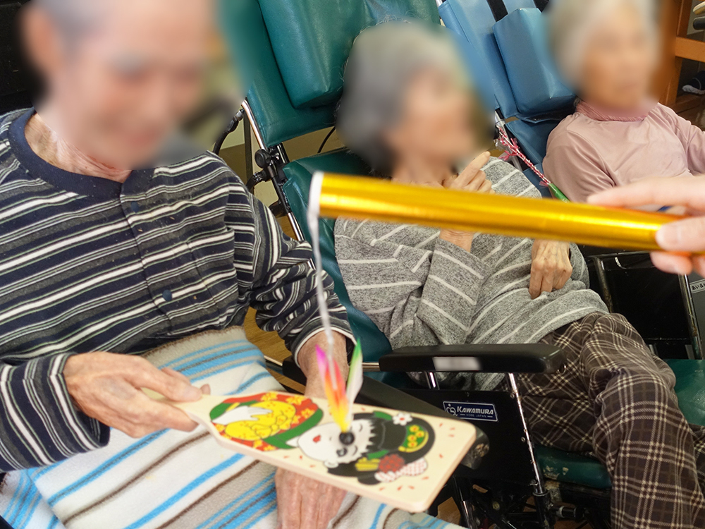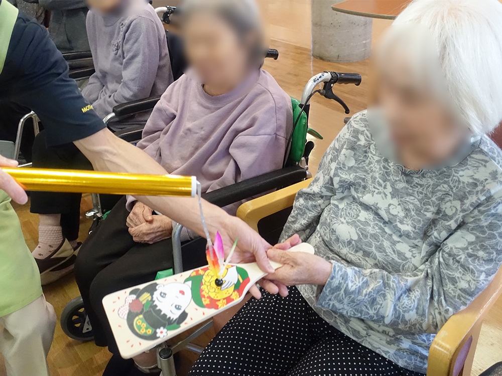 お正月ならではの遊びに、食堂は明るい笑い声に包まれました。