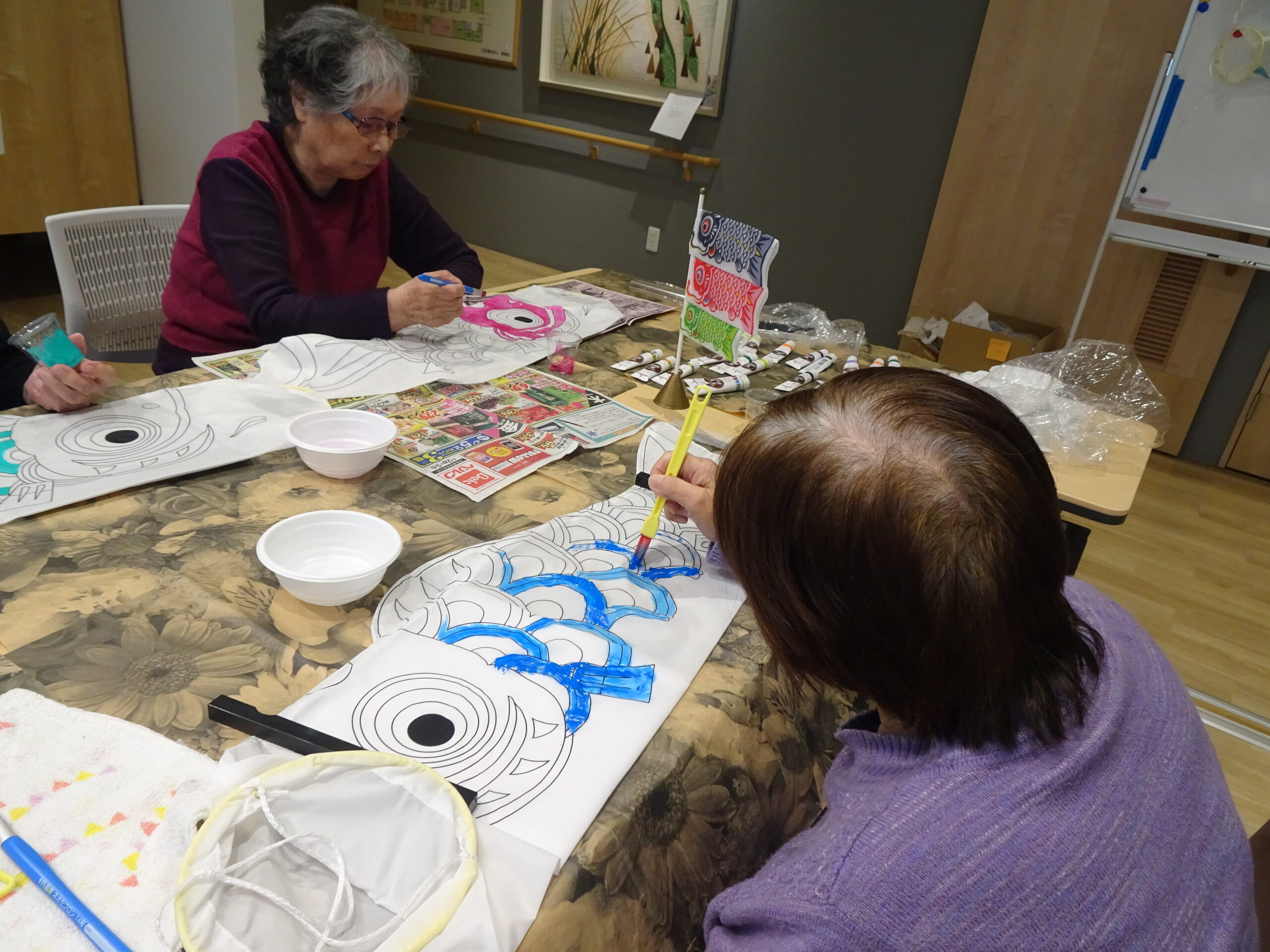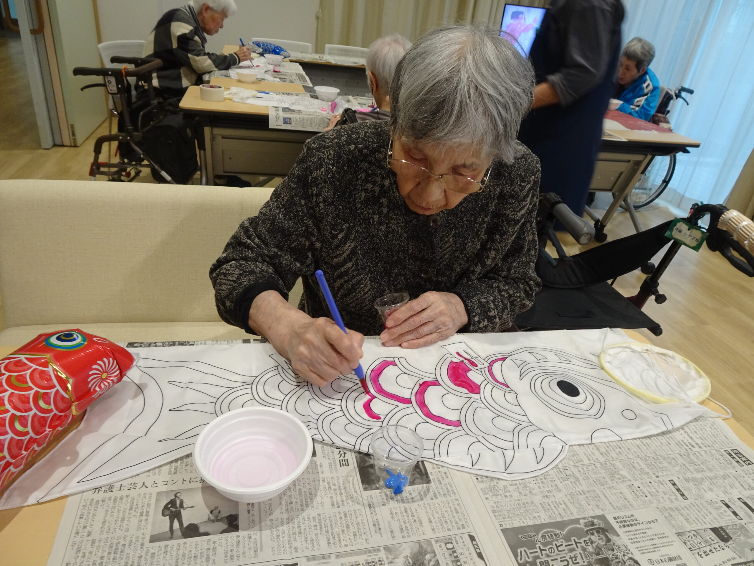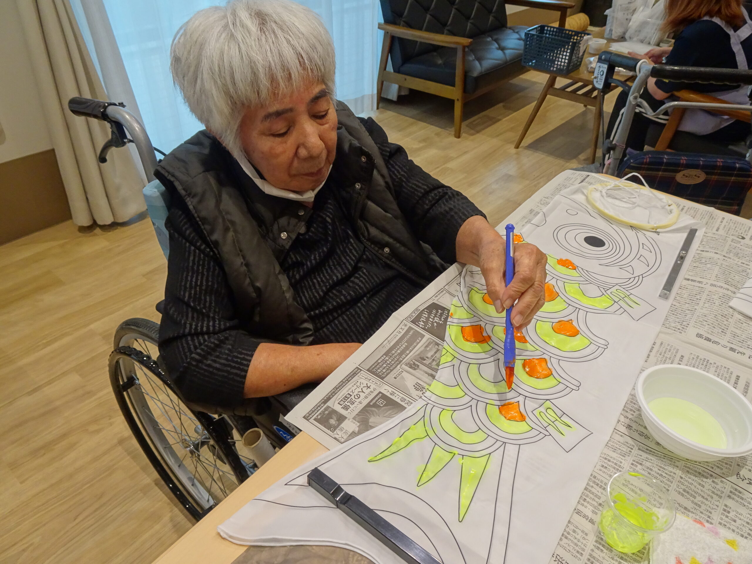 サテライトでは、今年も利用者様に鯉のぼりに布絵具を使って