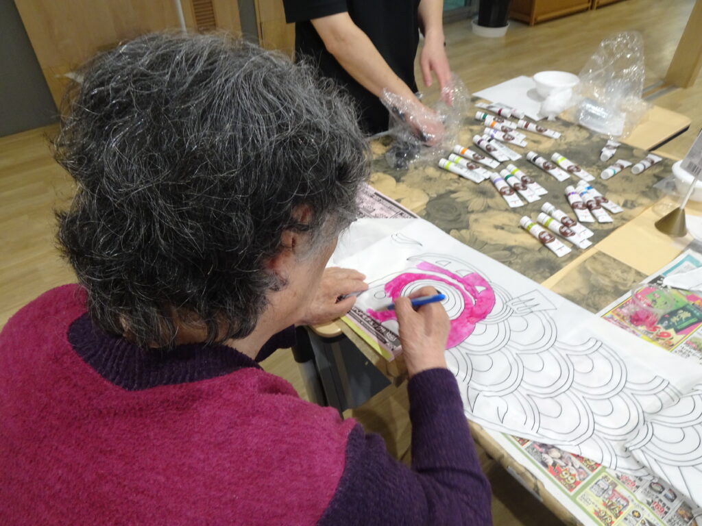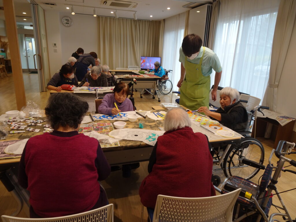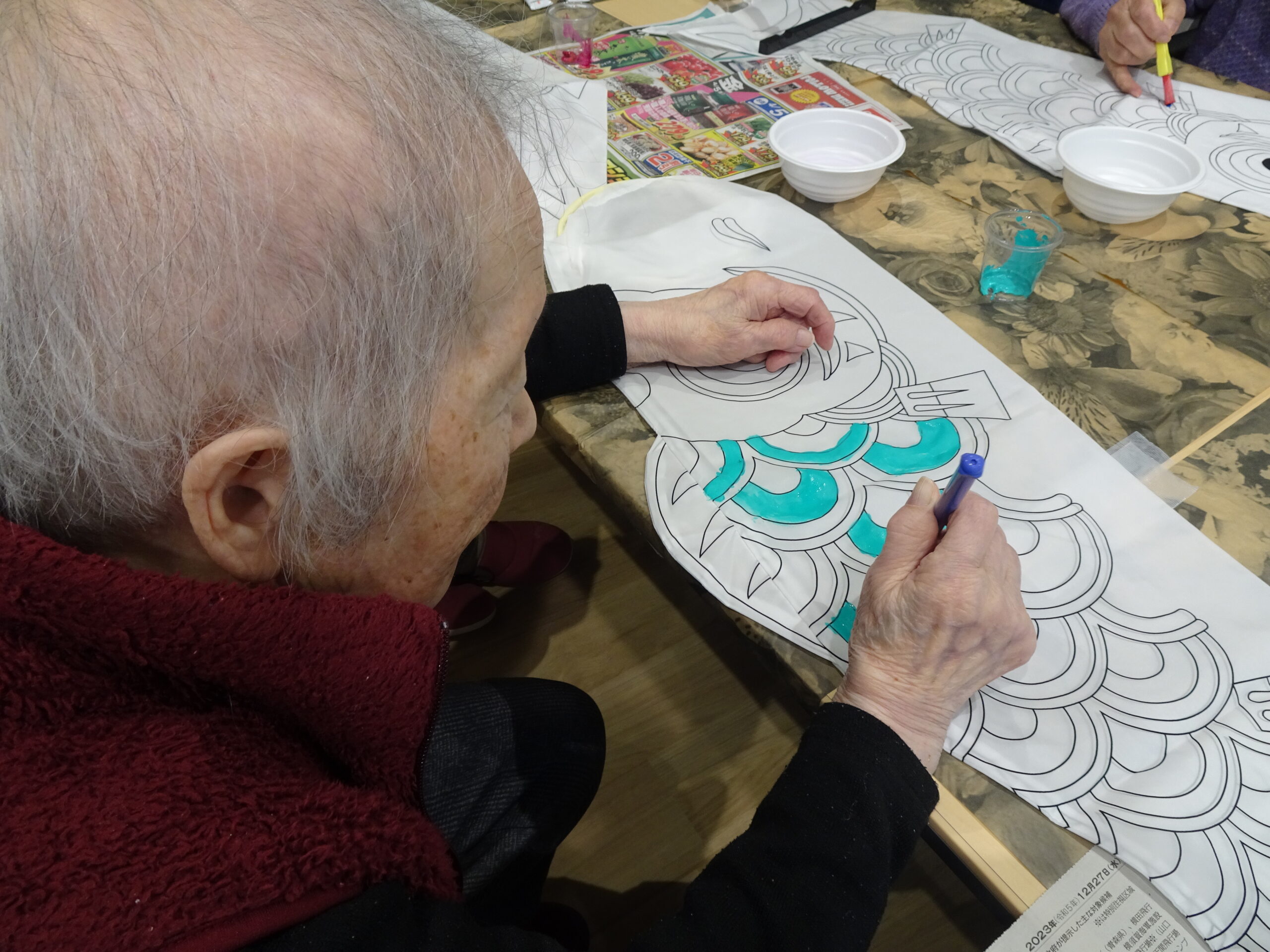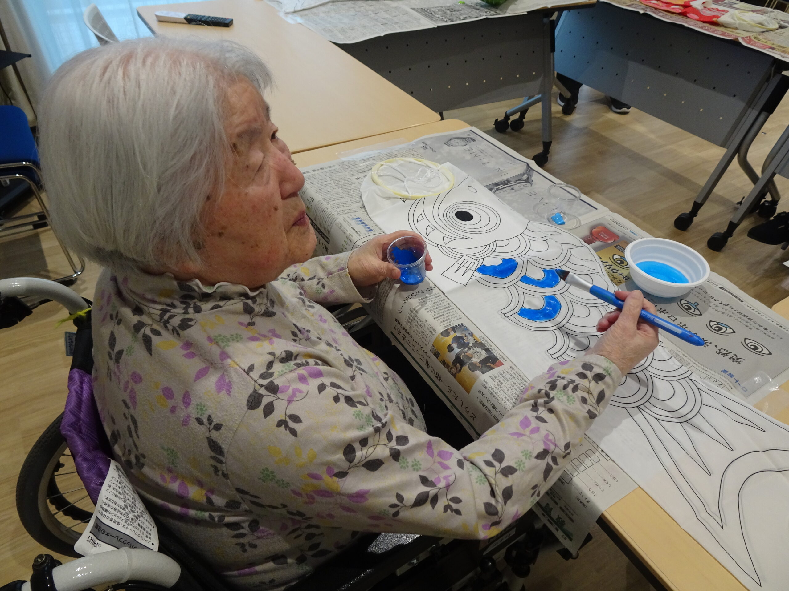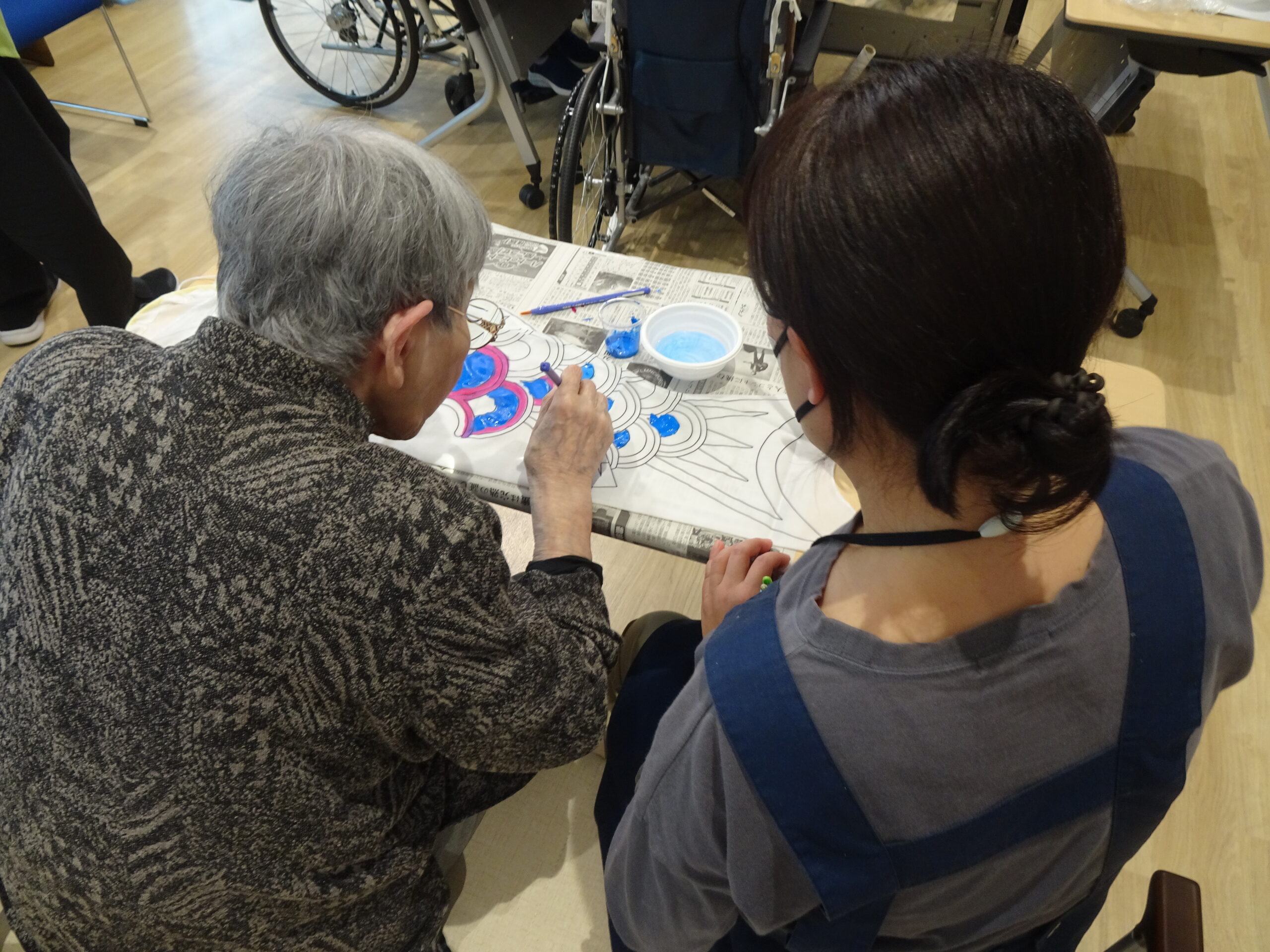 利用者様同士でお話しを楽しみながら、楽しく色塗りを