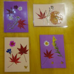 1F特養・ショートステイでは、もみじや季節の花を使った「押し花作り」を行いました。
