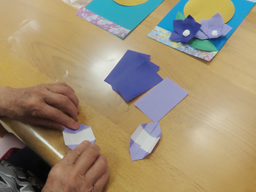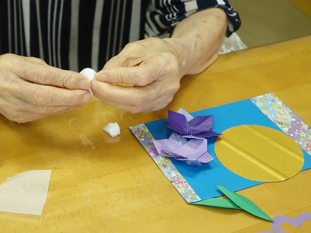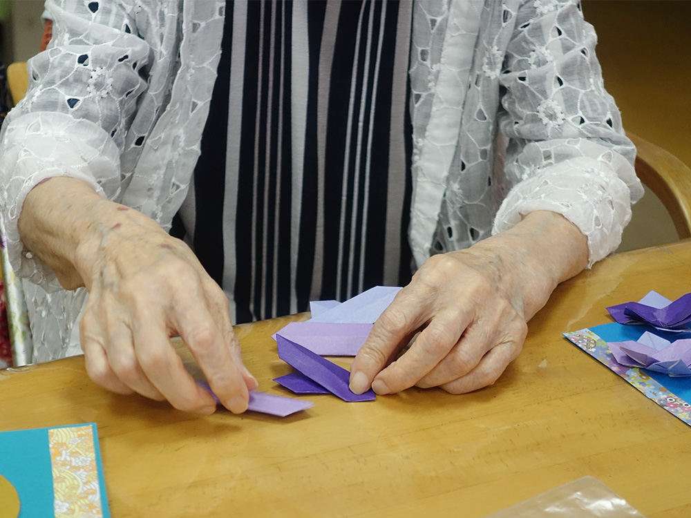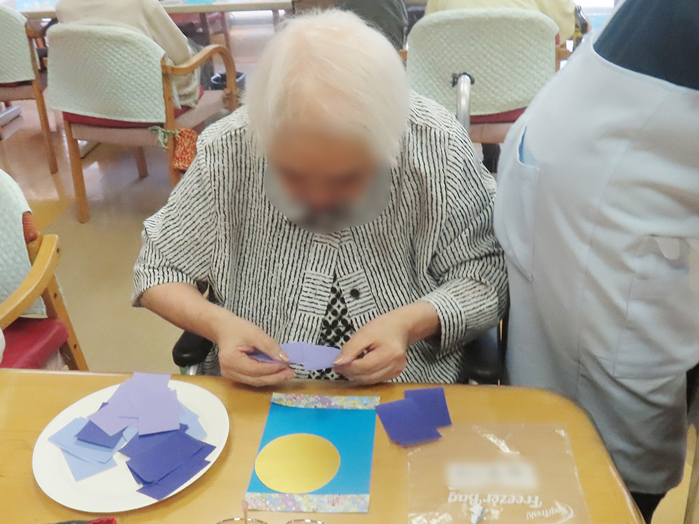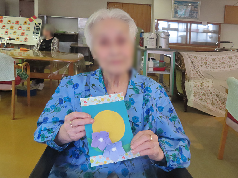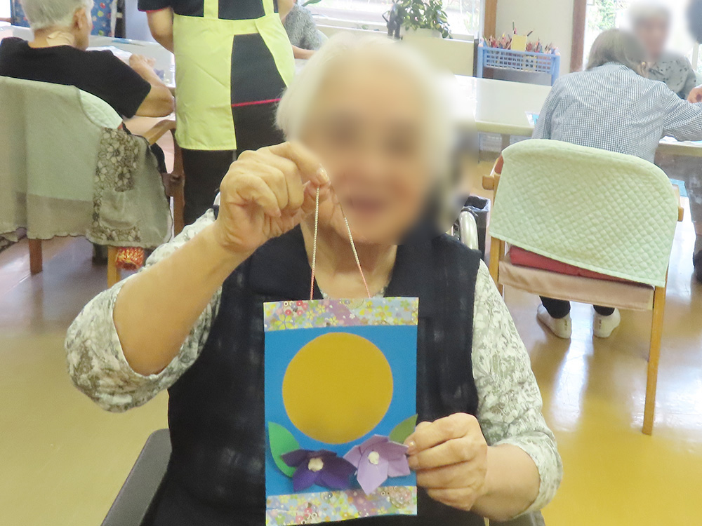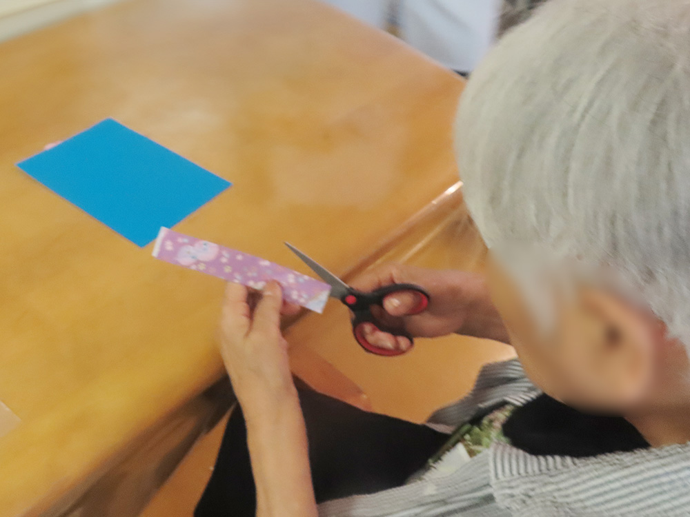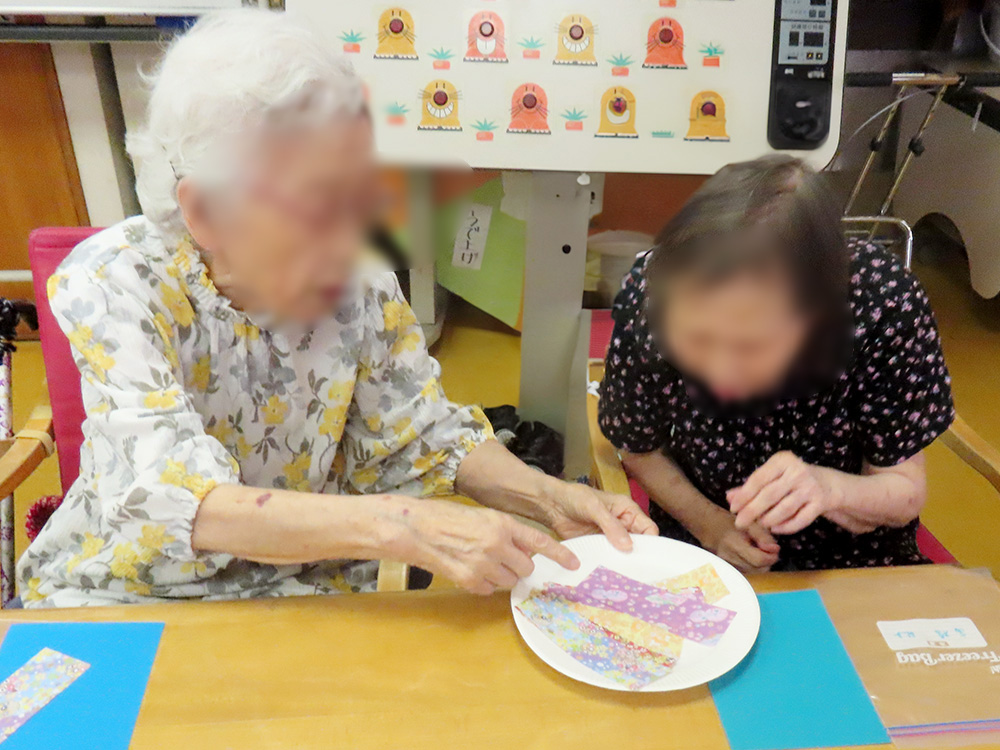 おやつは祝い菓子を頂きました。上品な甘さと華やかな見た目に、「きれいね」「おいしいわ」と笑顔が広がり、皆さまに喜んでいただけました。
