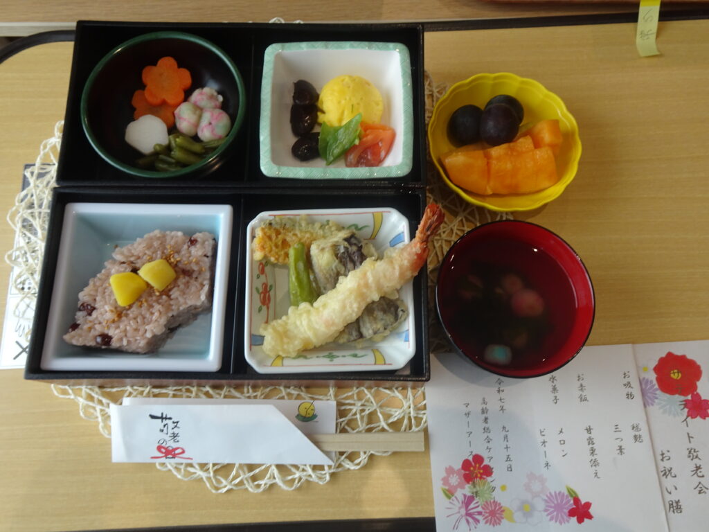 皆さま大変喜ばれていました。「おいしいね」「お祝いの日にぴったりだね」との声があがり、和やかで華やかな昼食のひとときとなりました。