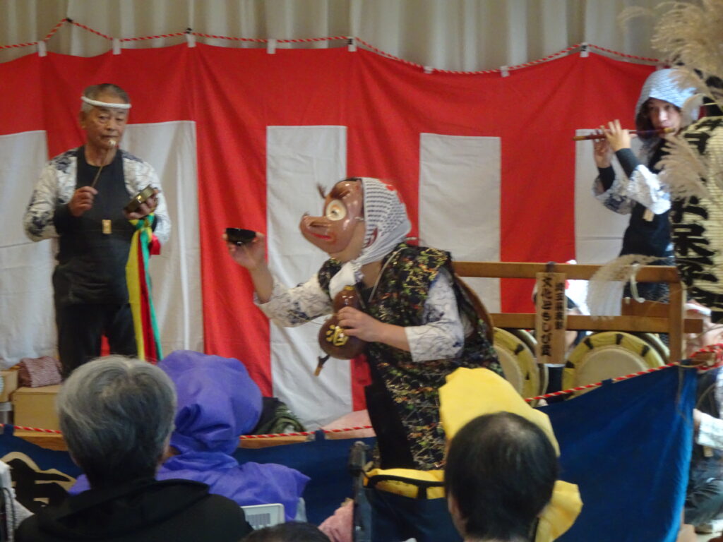敬老会の午後のひとときは、職員による紙芝居「うさぎとかめのその後」を上演しました。